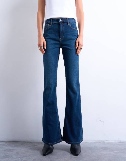 Topshop - Jamie - Flared jeans met hoge taille in rijkblauw