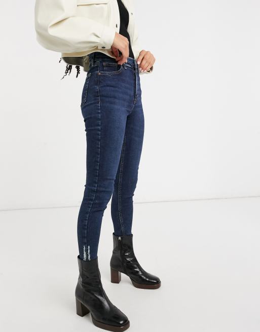Topshop - Jamie - Jeans met gescheurde zoom in indigo