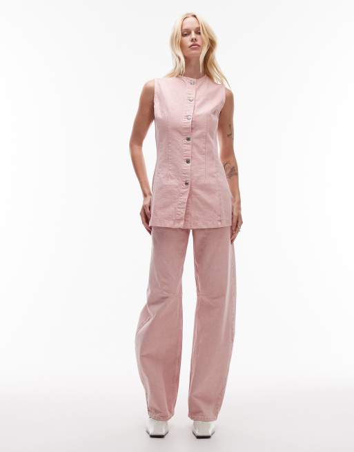 Topshop - Jeans met halfhoge taille en wijde ronde pijpen in roze