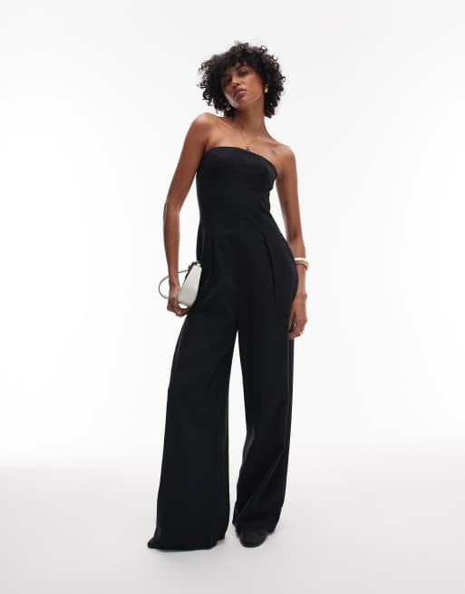 Topshop - Jumpsuit van linnenmix met zomen en wijde pijpen in zwart