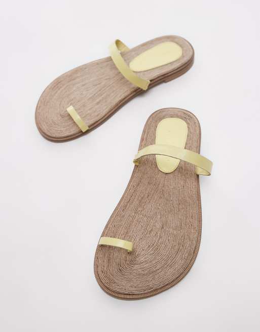 Topshop - Kik - Platte teensandalen van echt leer in lichtgeel
