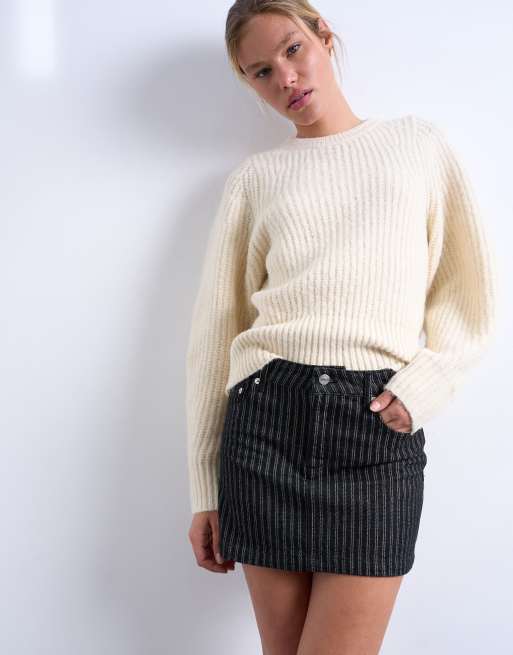 Topshop - Korte denim minirok in zwarte streep