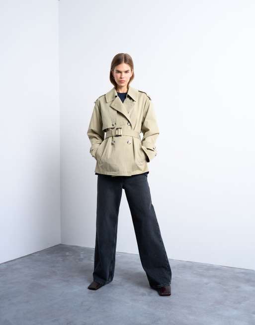Topshop - Korte trenchcoat in stone