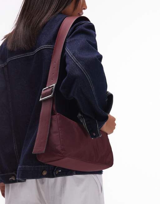 Topshop - Kylie - Crossbody tas van nylon met contrasterende band in bordeauxrood