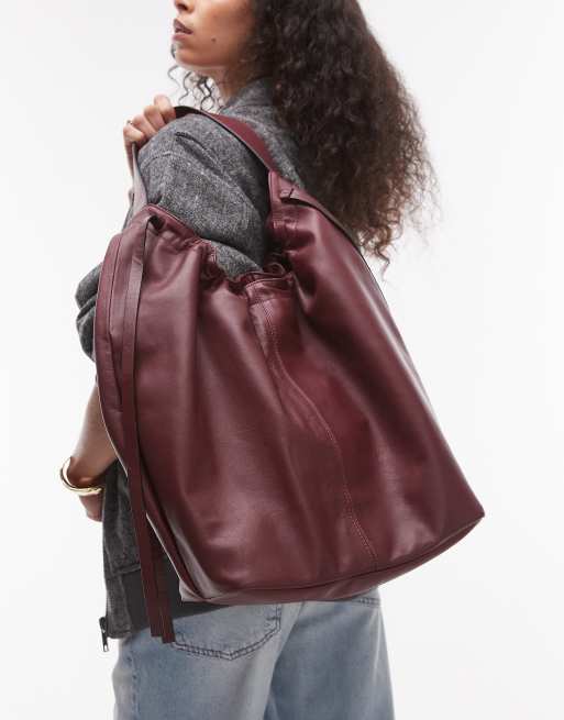 Topshop - Lennox - Tote tas van leer met gerimpeld detail in bordeauxrood