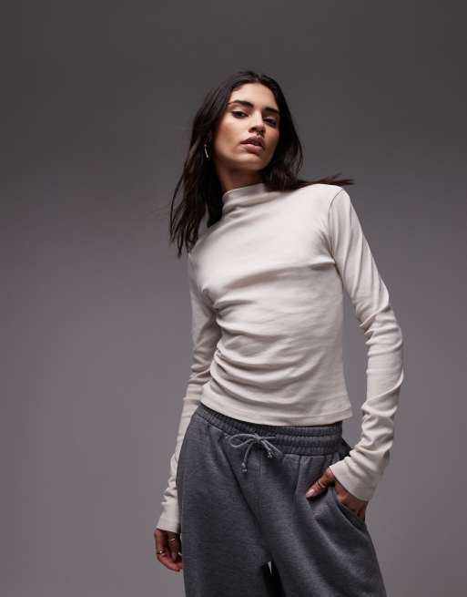 Topshop - Longer Everyday - Smalle top met lange mouwen en contrast in gebroken wit