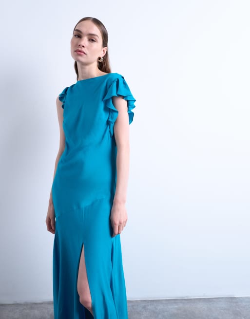 Topshop - Maxi-jurk van chiffon met fladdermouwen en gedrapeerde achterkant in luchtmachtblauw
