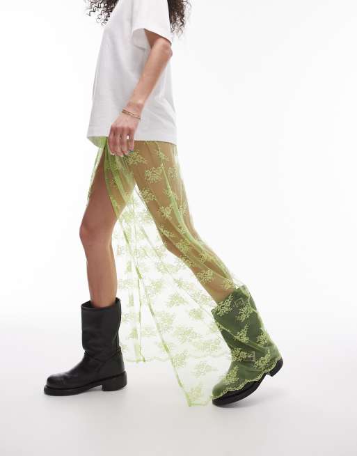 Topshop - Maxirok van kant in limoengroen
