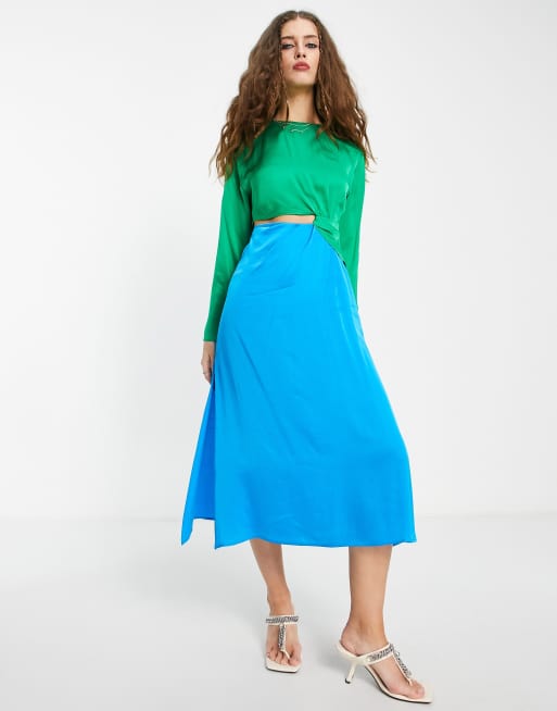 Topshop - Midi-galajurk met kleurvlakken en uitsnijding in groen en kobaltblauw