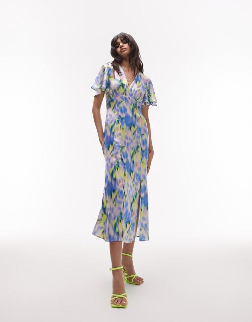 Topshop - Midi-gelegenheidsjurk met fladdermouwen en V-hals in multi