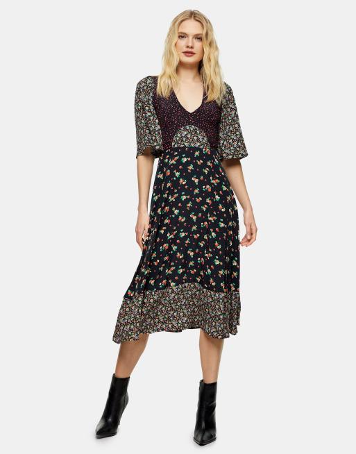 Topshop - Midi-jurk met gemengde bloemenprint in multi