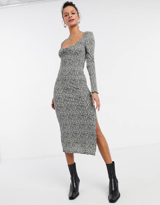 Topshop - Midi-jurk met lage ronde hals en bloemenprint in groen