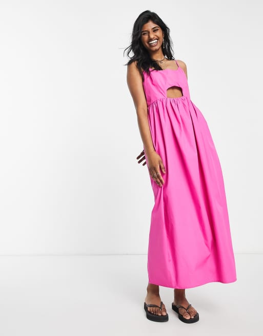 Topshop - Midi-jurk van katoenen popeline met uitsnijding in roze