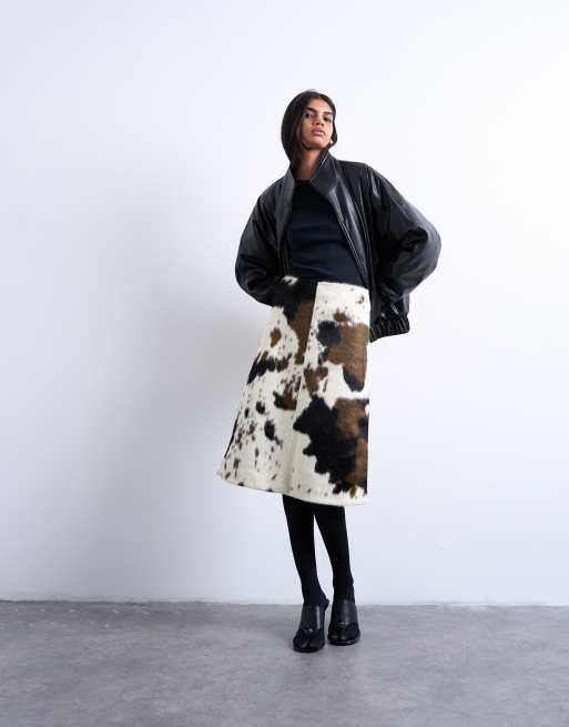 Topshop - Midi rok van harig pony imitatiebont met A-lijn en koeienprint