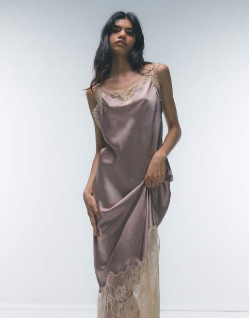 Topshop - Midi-slipdress met contrasterend kant in oudroze