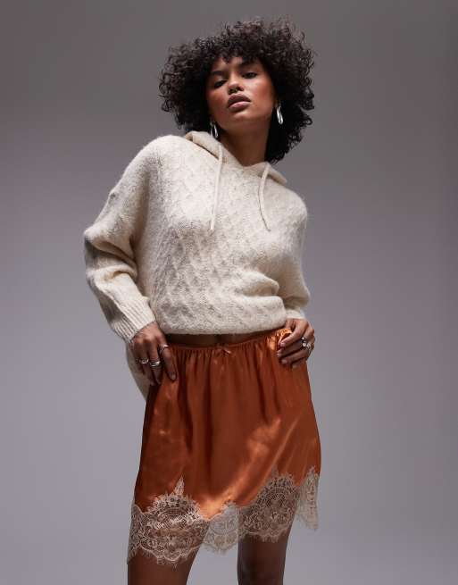 Topshop - Mini rok van satijn met kant in oranje
