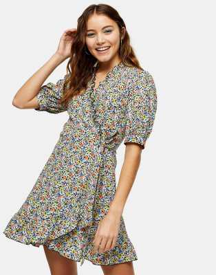 Topshop - Mini-wikkeljurk met fijne bloemenprint in multi