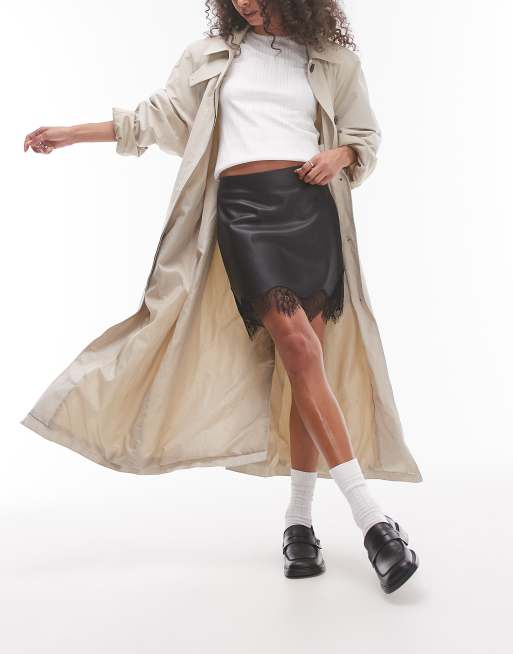 Topshop - Minirok van imitatieleer met kanten zoom in zwart