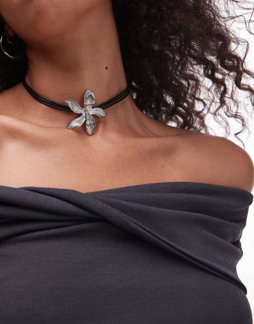Topshop - Nellie - Choker ketting met bloem-hanger in zilverkleur