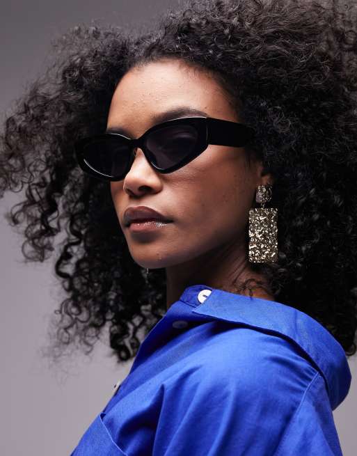 Topshop - Nigella - Hoekige cat eye zonnebril in zwart