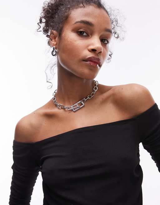 Topshop - Nina - Ketting met grove vierkante schakels en T-staafje in zilverkleur