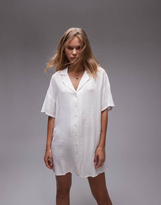 Topshop - Overhemdjurk van linnenmix in ivoorwit