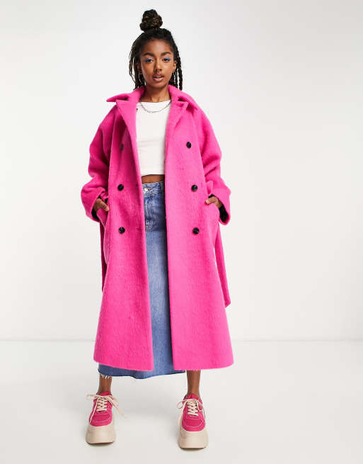 Topshop - Oversized geborstelde trenchcoat in roze