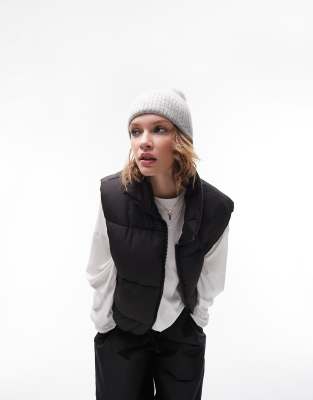 Topshop - Oversized gewatteerde bodywarmer zonder mouwen in zwart