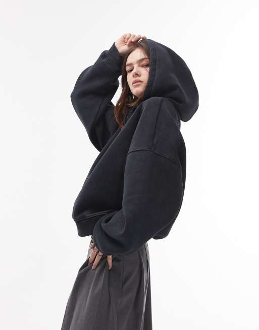 Topshop - Oversized hoodie in grijs met wassing