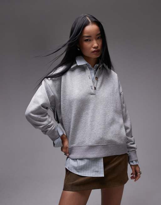 Topshop - Oversized polo-sweatshirt in grijs