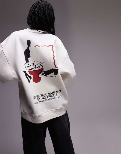 Topshop - Oversized sweatshirt met grafische print in gebroken wit