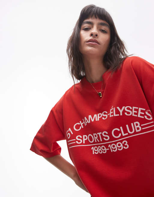 Topshop - Oversized T-shirt met 'Champs Elysees' print in rood