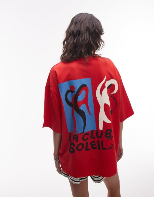 Topshop - Oversized T-shirt met grafische La Club Soleil-print in rood