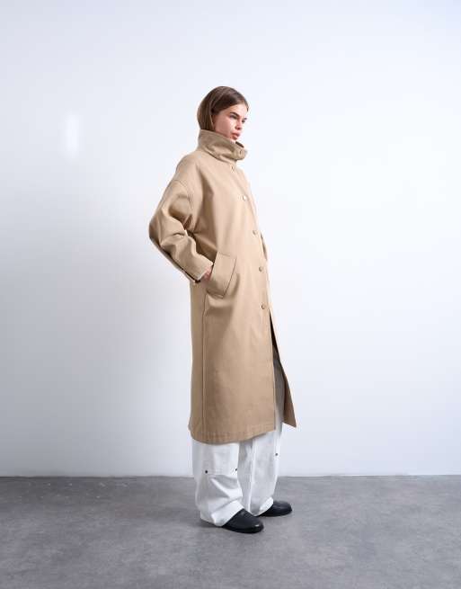 Topshop - Oversized trenchcoat met opstaande boord in beige