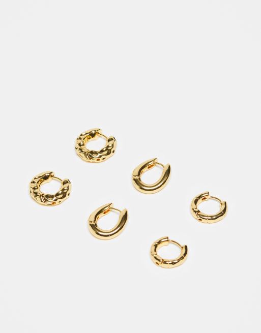 Topshop - Pasha - Set van 3 paar oorringen verguld met 14k goud