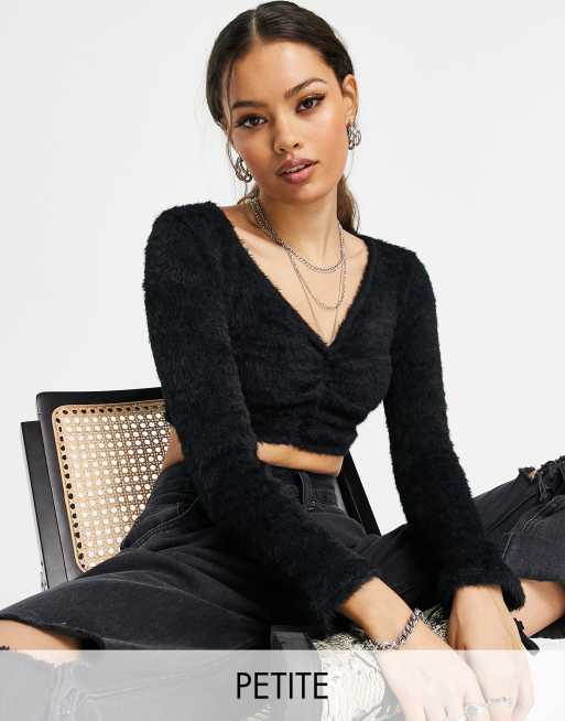 Topshop Petite - Pluizig gebreid vest met knopen voor in zwart