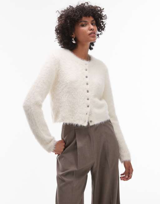 Topshop - Pluizig gebreid micro vest in ivoor