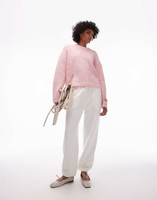 Topshop - Pluizig gebreide, ruimvallende ultieme trui in lichtroze