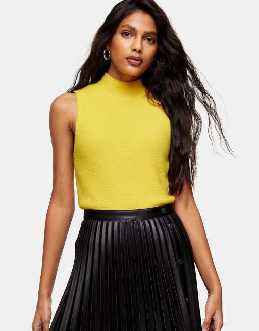 Topshop - Pluizige gebreide tanktop met opstaande boord in geel