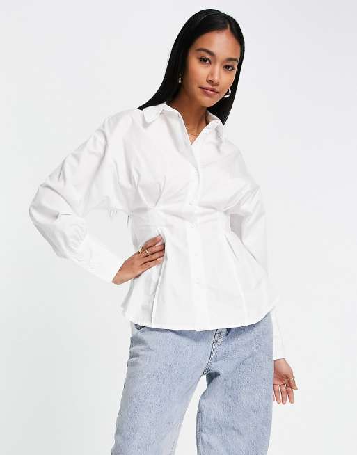 Topshop - Poplin overhemd met ingenomen taille in wit