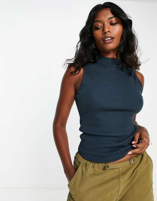 Topshop - Premium - Basic top met hoogsluitende kraag in leisteen