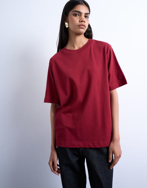 Topshop - Premium - Eenvoudig T-shirt met korte mouwen in donkerrood