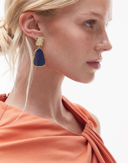 Topshop - Prince - Oorknopjes met steen in goud en kobaltblauw