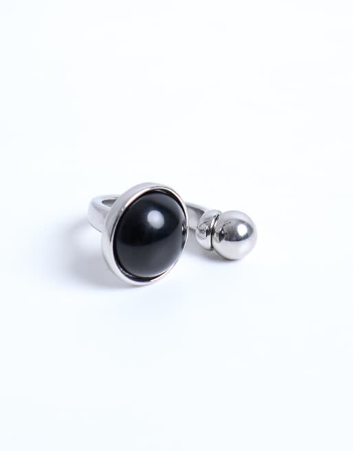 Topshop - Rae - Roestvrijstalen ring met halfedelsteen in zilver en zwart