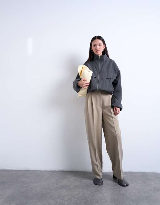 Topshop - Ruimvallende broek met dubbele plooien in taupe, deel van co-ord set