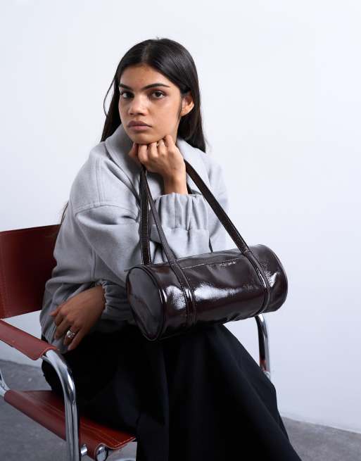 Topshop - Salma - Bowlingtas van lakleer in chocoladebruin