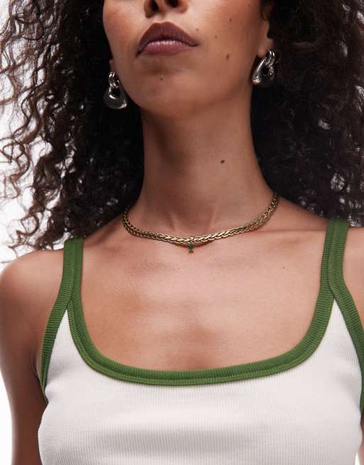 Topshop - Sara - Ketting met groene hanger in goudkleurige textuur