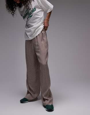 Topshop - Satijnen geruite broek met wijde pijpen en trekkoord in neutraal, deel van co-ord set