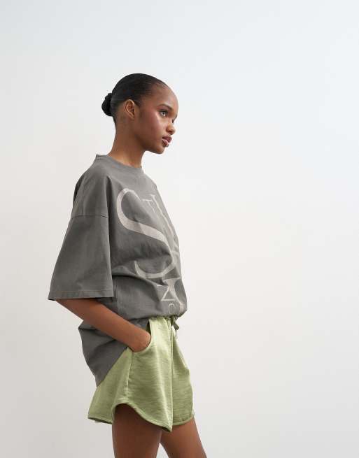 Topshop - Satijnen hardloopshort met brede tailleband in groen