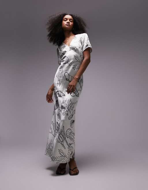 Topshop - Schuingesneden midi-jurk met korte mouwen en schelpenprint